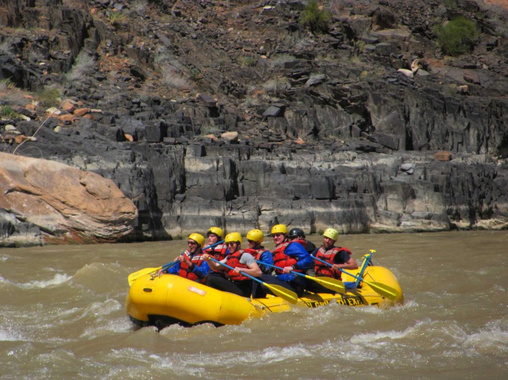 - Colorado River forces its way into narrow Black Granite Gorge forming renowned rapids like: Little Hummer, Funnel Falls, Last Chance & the infamous Skull Rapid.